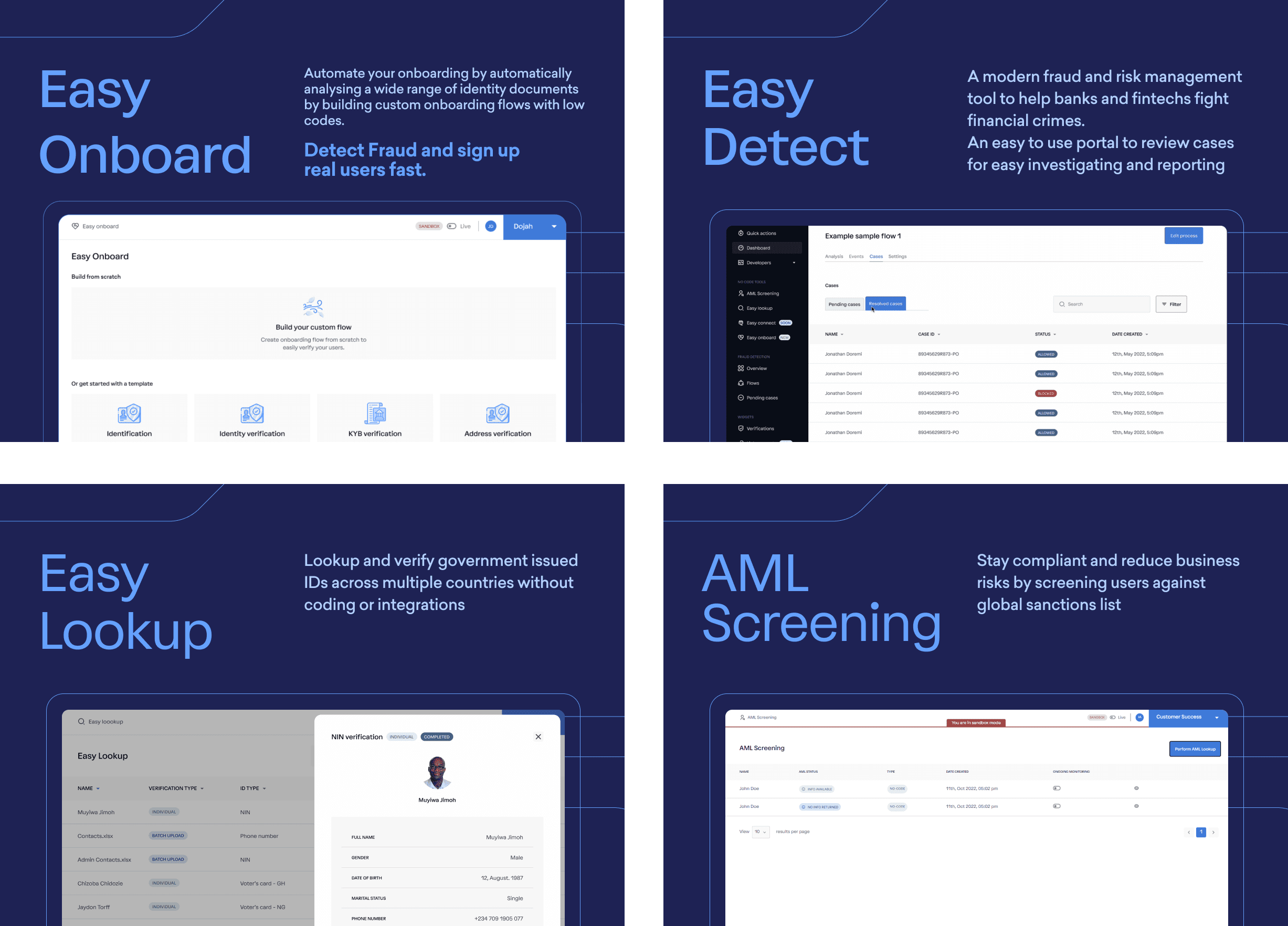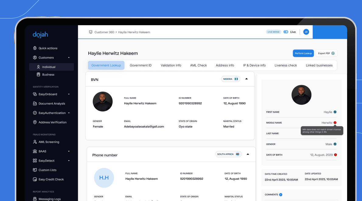 Dojah is particularly strong in multi-source identity verification, connecting to telco and government data. It serves industries needing broad verification capabilities like e-commerce and insurance.